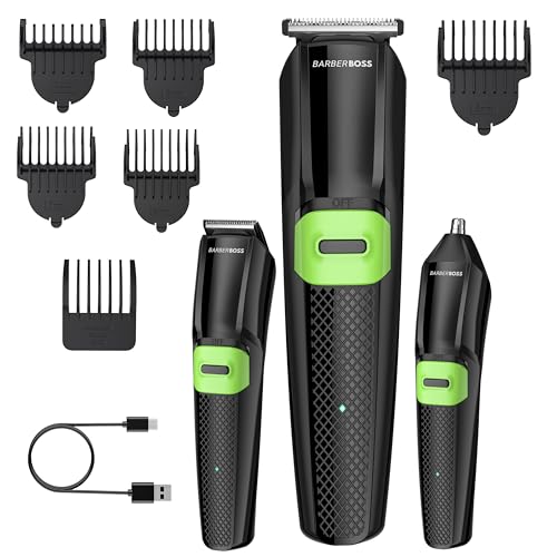 Barberboss Cordless Beard Trimmer for Men, 3-in-1 Beard, Hair & Nose Clipper, Men Grooming Kit with Ceramic Blades, Adjustable Length Dial, USB Charging & Waterproof Design, Men’s Clippers