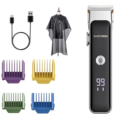 BarberBoss Professional Beard Trimmer Men, Hair Clipper, Waterproof Design, Precision Dial, Grooming Kit - Ear & Nose, 39 Cutting Lengths, Comb Attachments, LED Display