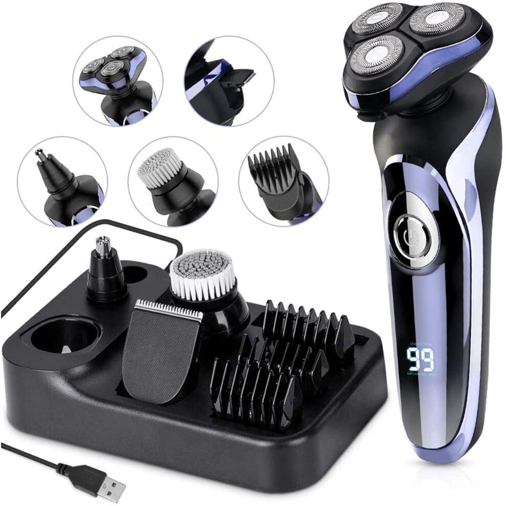Menâs electric razor, menâs 4-in-1 rotating beard clipper, waterproof USB fast charge, wireless beard, nose and hair clipper