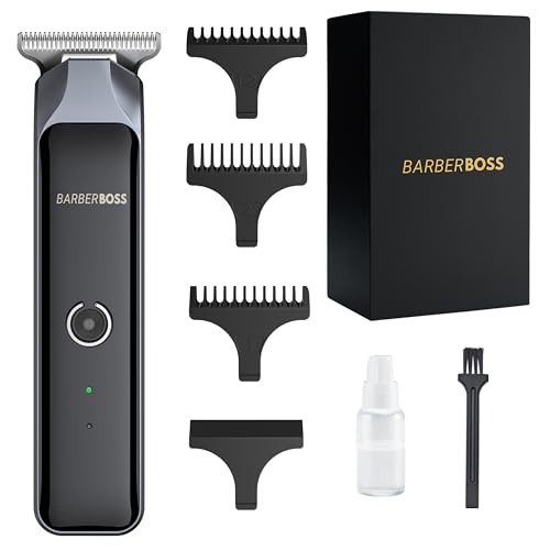 BarberBoss Professional Facial Groomer & Beard Trimmer for Men: Hair Clipper, Detail Trimmer, USB Rechargeable, Stainless-Steel T-Blade, Red/Green LED Indicator, Waterproof