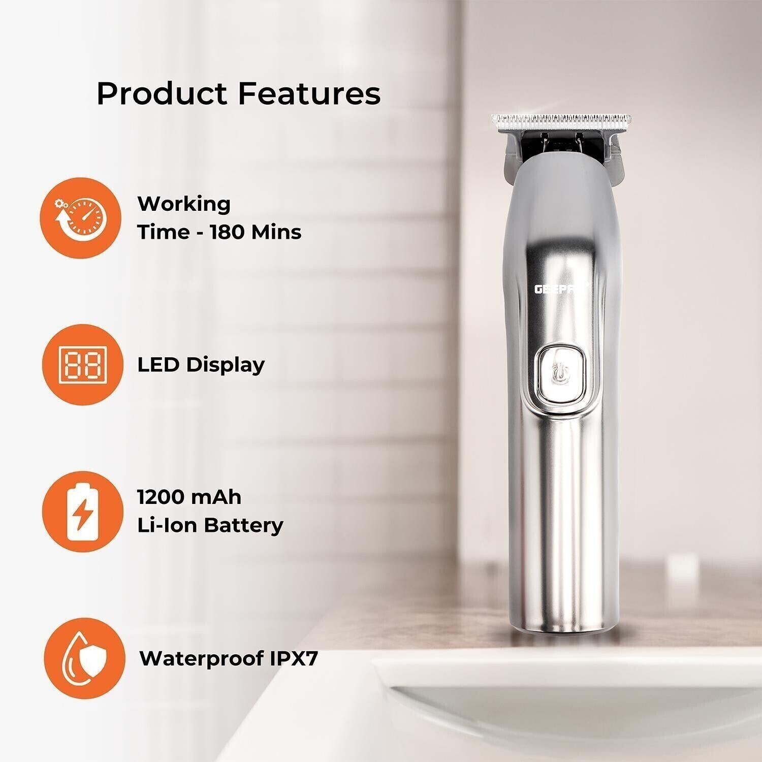 Rechargeable Beard Trimmer Cordless Stubble Hair Trimmer LED Display Geepas