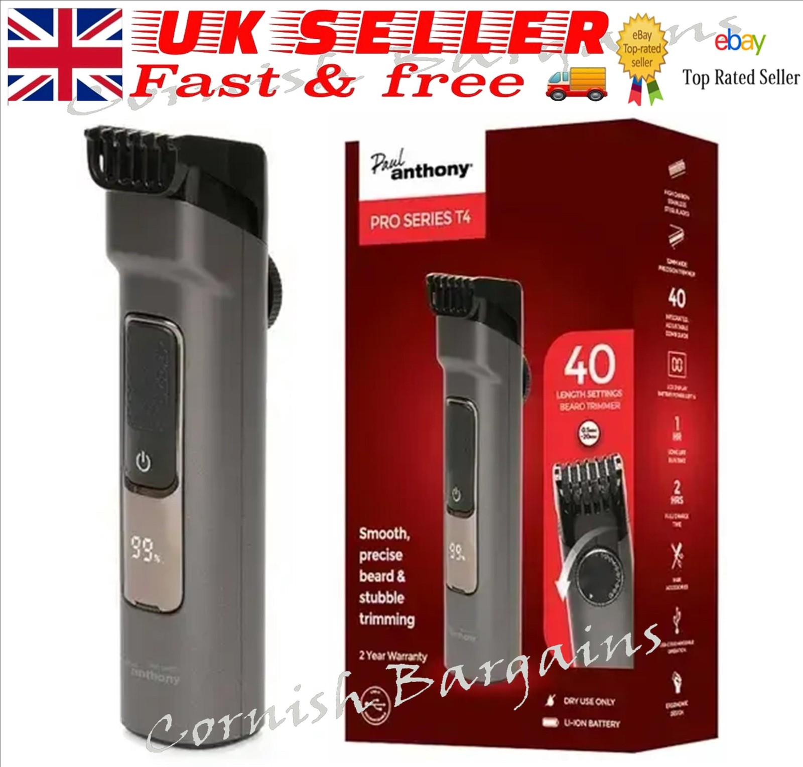 Paul Anthony 'Pro Series T4' USB-C Lithium Beard & Stubble Trimmer LCD Display