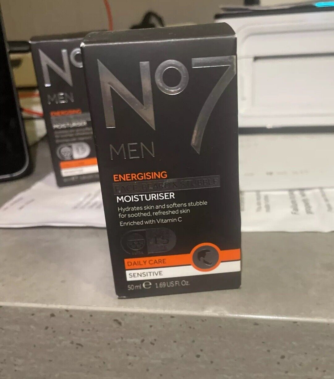 No7 Men Energising Face, Beard & Stubble Moisturiser SPF15 Daily Care 50ml New