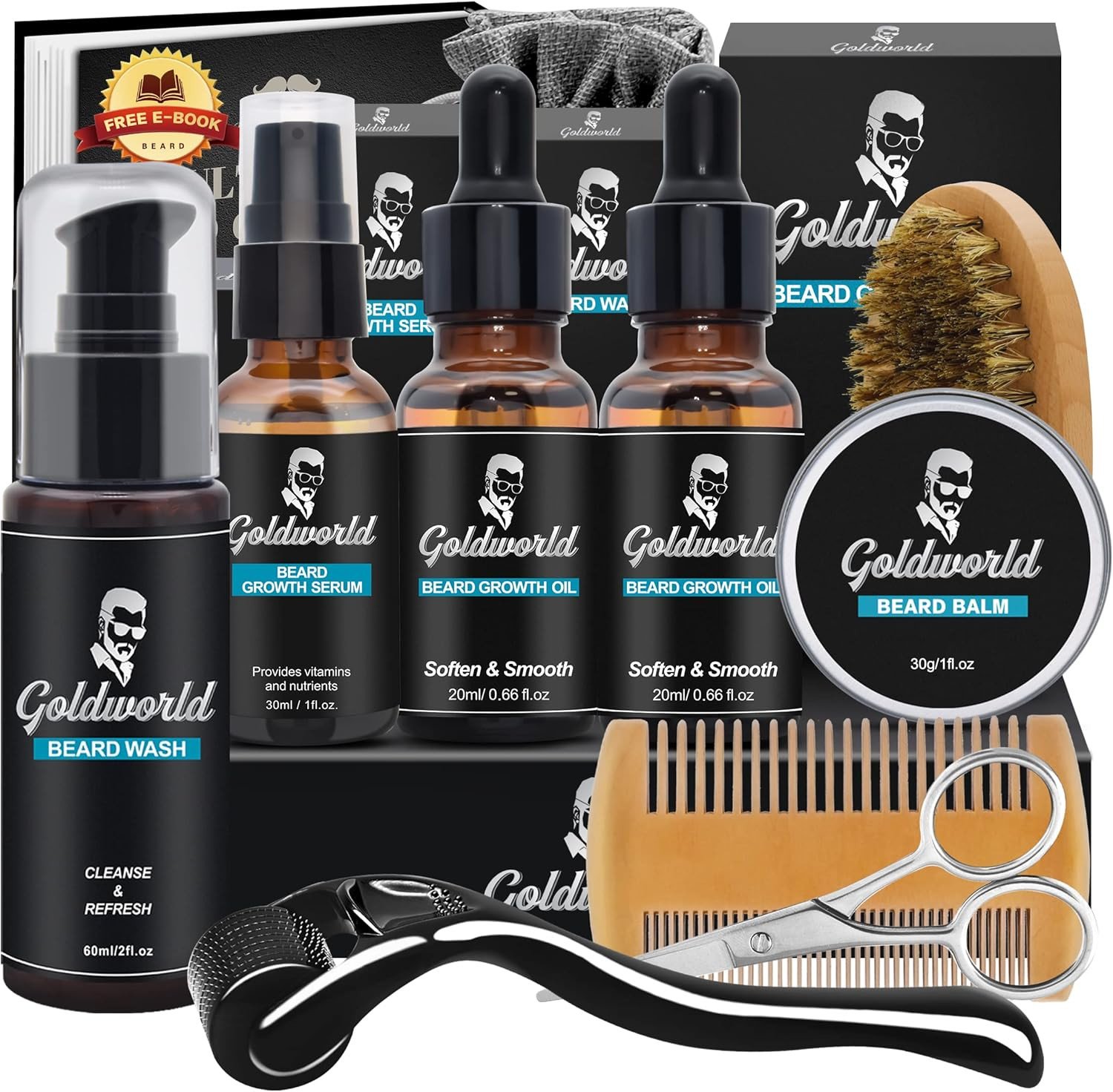 Beard Growth Grooming Care Kit for Men w/Derma Roller Hair Growth,Fathers Gifts