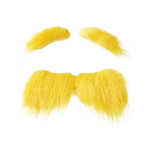 Fake Moustache And Eyebrows Moustaches Beard Cosplay Costume Accessories For Men Women Halloween, Yellow Adhesive Mustache And Eyebrows(Color01)