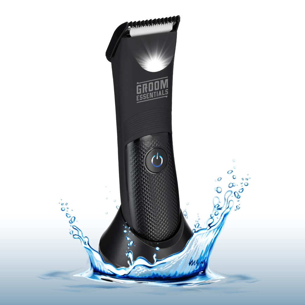 Groom Essentials Mens Rechargeable Ceramic Blade Hair & Body Trimmer | Groin Shaver & Detailer for Men | IPX7 Water-Resistant Beard Kit & Grooming Sel