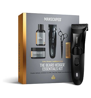 MANSCAPED The Beard Hedger Essentials Kit, Cordless Beard Trimmer, Beard Shampoo & Conditioner, Comb & Scissors