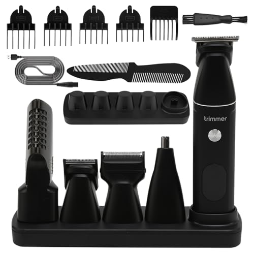 Ruspela Beard Trimmer Hair Clippers Kit 5 in 1 Male Grooming Set Waterproof Mens Cordless Electric Razor Shaver for Nose Body Face Beard Waterproof Shaver, Rechargeable