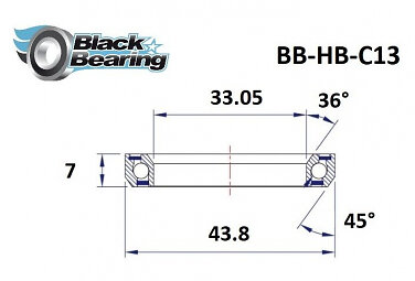 Black Bearing 36/45° Steering Silver 33 x 44 x 6 mm