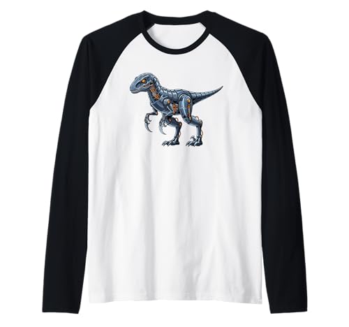 Robotic Raptor Dinosaur Cyber Mech Predator Design Raglan Baseball Tee