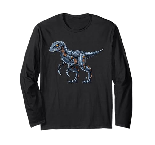 Robotic Raptor Dinosaur Cyber Mech Predator Design Long Sleeve T-Shirt