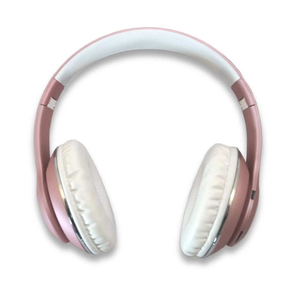 White Rose Gold Wireless Bluetooth Noise-Canceling Headphones, Foldable, Handsfree HiFi Stereo Gaming Headset