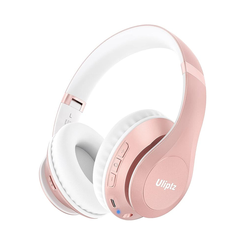 Uliptz Wireless Bluetooth Headphones, 65H Playtime Over Ear Headphones with Microphone, 6EQ Sound Modes Wireless Headphones (Rose Gold)