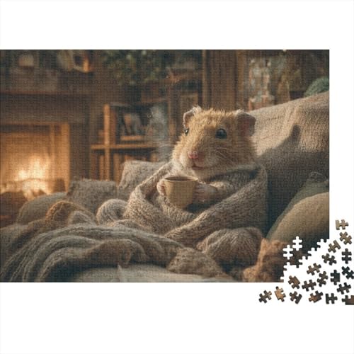 Hamster 1000 Piece Jigsaw Puzzles Hamster Cozy in Cabin Blankets for Adult Educational Game Beautiful Decoration Challenge High Difficulty Birthday Gifts 38x26cm/1000pcs