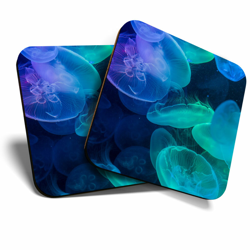 2 x Coasters - Beautiful Jellyfish Blue Sea Creatures Home Gift #8379