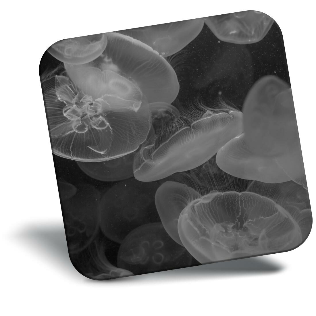Square Single Coaster bw - Beautiful Jellyfish Blue Sea Creatures #41061