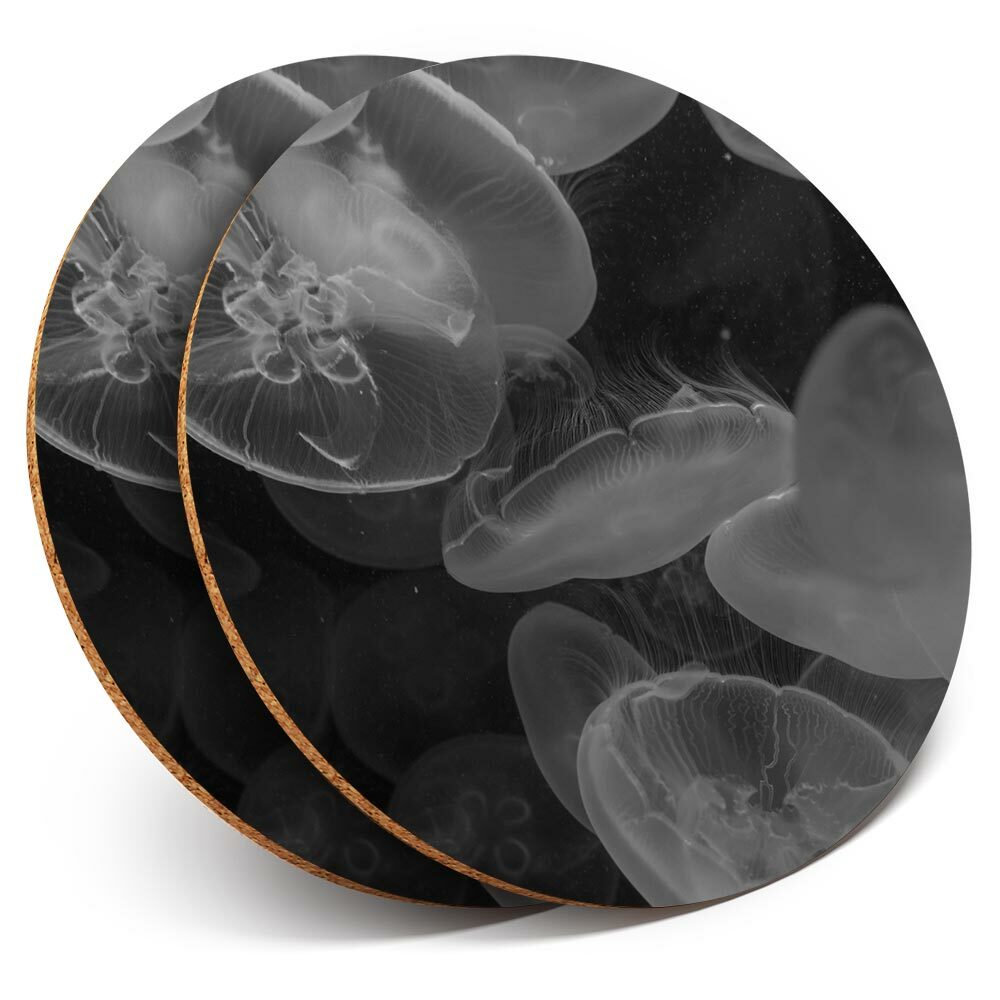 2 x Coasters bw - Beautiful Jellyfish Sea Creatures #41061