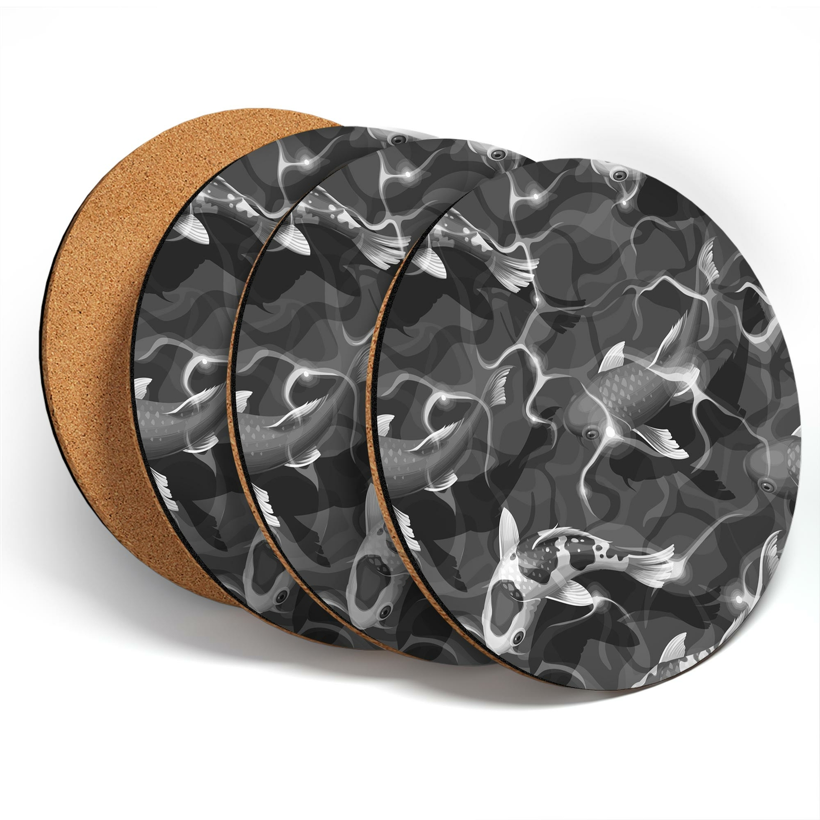 Round Single Coaster - BW - Beautiful Koi Carp Fish Sea Creatures #41064