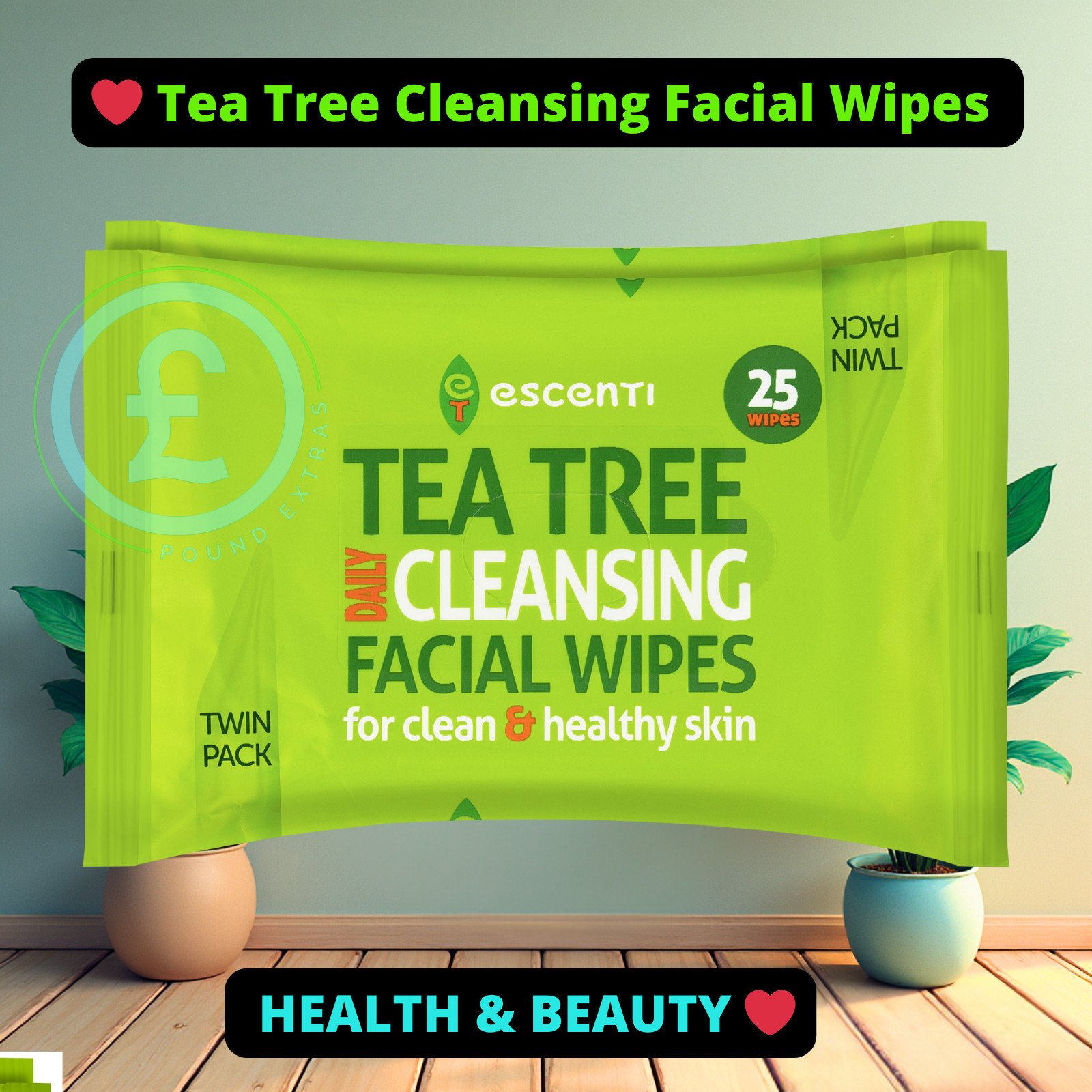 Escenti Tea Tree Cleansing Facial Wipes Twin Pack 25 Wipes for Skin Care Beauty❤
