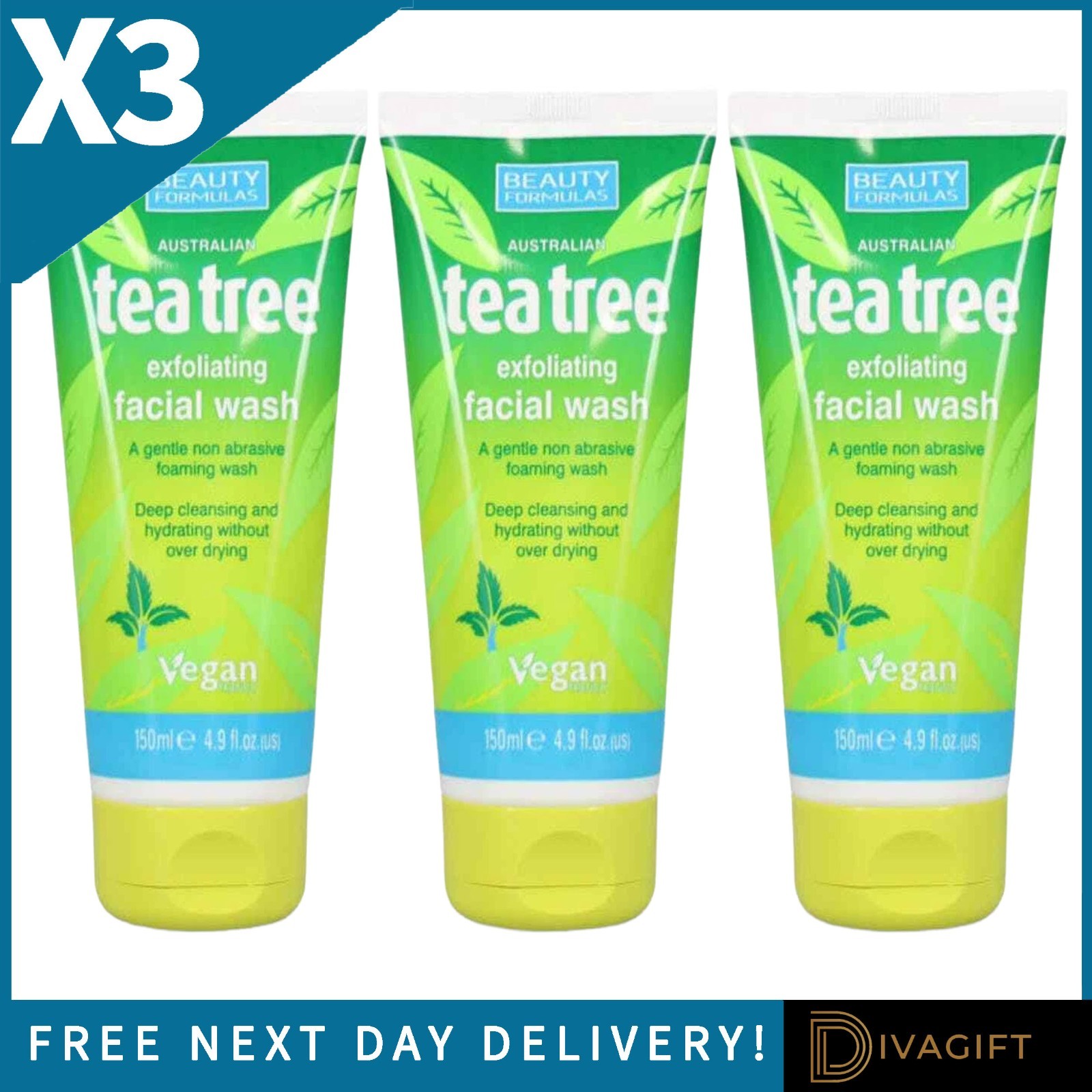 Beauty Formulas Tea Tree Exfoliating Facial Wash 150ml - Pack of 3