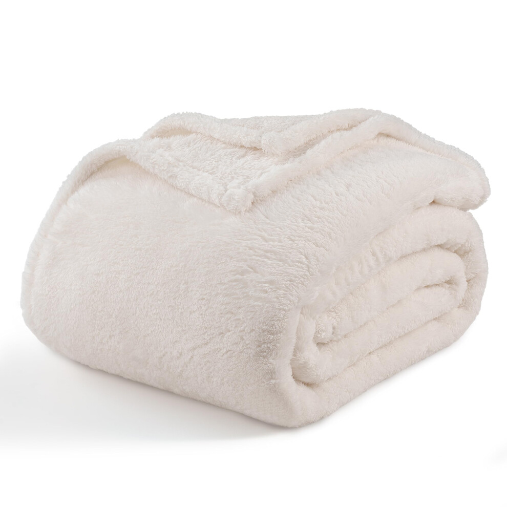 Berkshire Blanket Classic Extra-Fluffy Plush Blanket, Queen Size Bed Blanket, Soft Fuzzy Fluffy Long Hair Blanket for Couch Sofa Bed, Cream, 90x90 Inc