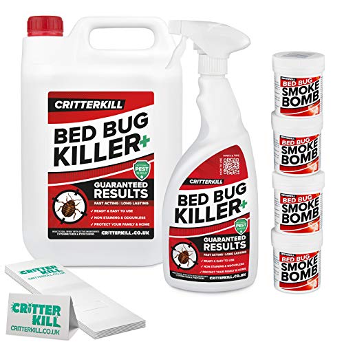 CritterKill Bed Bug Killer Kit - For Medium Level Home Infestation - Bedbug Spray + Smoke Bombs + Insect Traps (5+1L / 4x16g / 6)