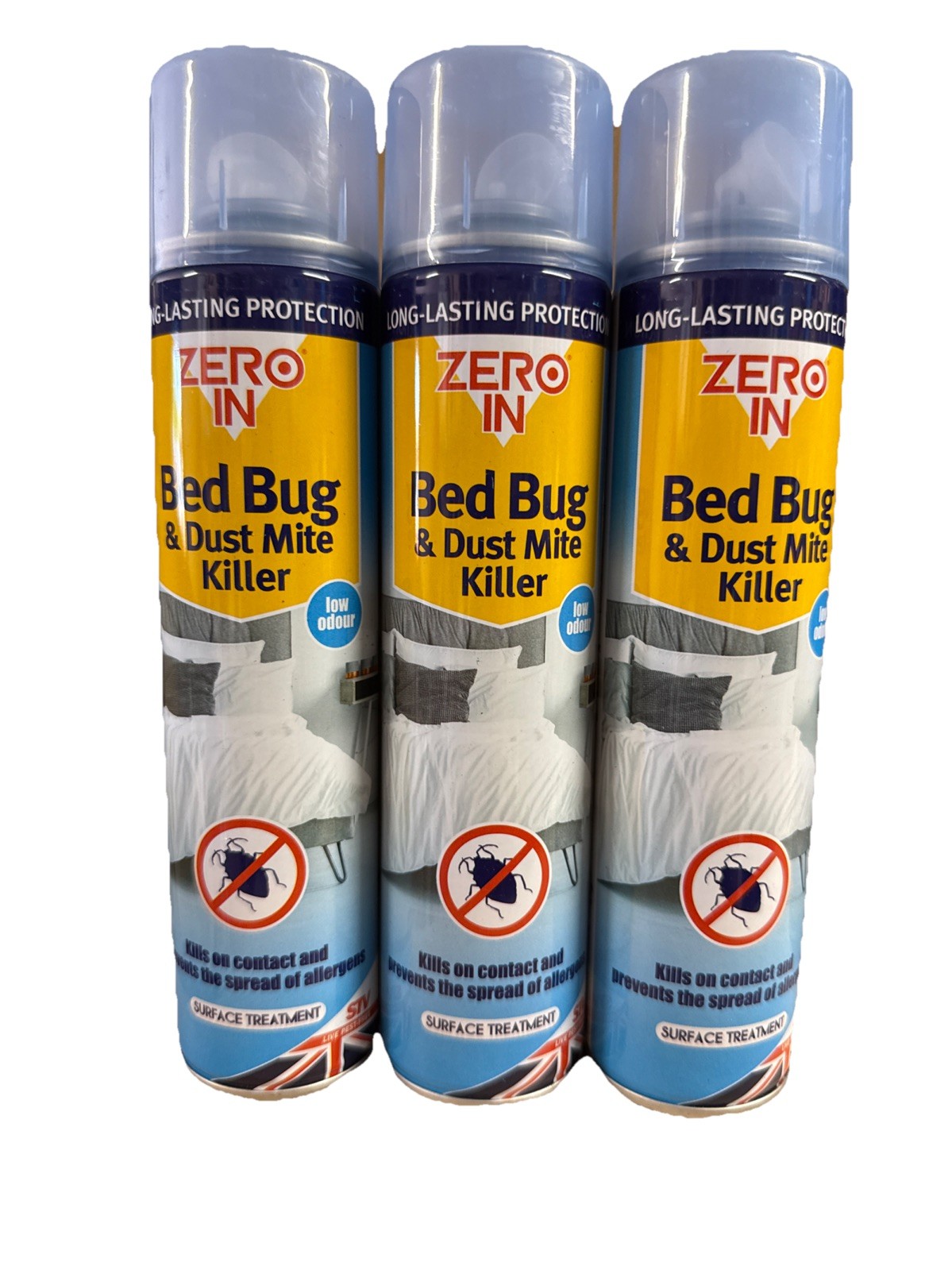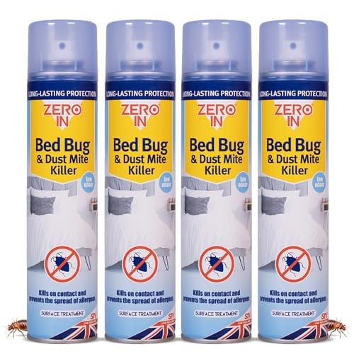 Zero In Bed Bug & Dust Mite Killer – Bed Bug Spray for Mattress, Bed Frames & Furnishings - Fast-Acting Aerosol Surface Treatment for Immediate Results - Prevents Allergies - 300ml Multi Packs X4
