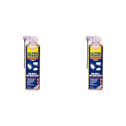 Zero In Ultra Power Bed Bug & Dustmite Killer - 500 ml Dual Action Aerosol. Indoor Use. Fast-Acting. Kills Bed Bugs on Contact and Prevents the Spread of Allergens (Pack of 2)