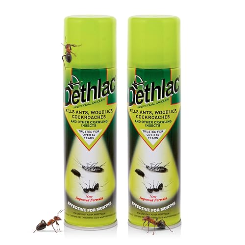 2 x Dethlac Spray | Ant Killer Indoor & Outdoor 250ml Aerosol | Insect Killer Indoor & Outdoor Use – Insecticide Bug Spray Lacquer - Effective for Ants, Cockroach, Woodlice & Other Crawling Insects
