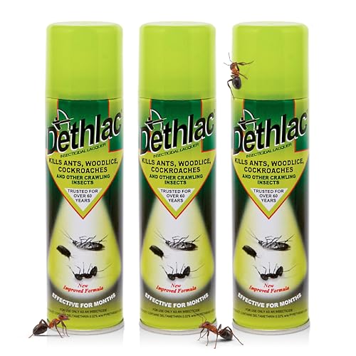 3 x Dethlac Spray | Ant Killer Indoor & Outdoor 250ml Aerosol | Insect Killer Indoor & Outdoor Use – Insecticide Bug Spray Lacquer - Effective for Ants, Cockroach, Woodlice & Other Crawling Insects