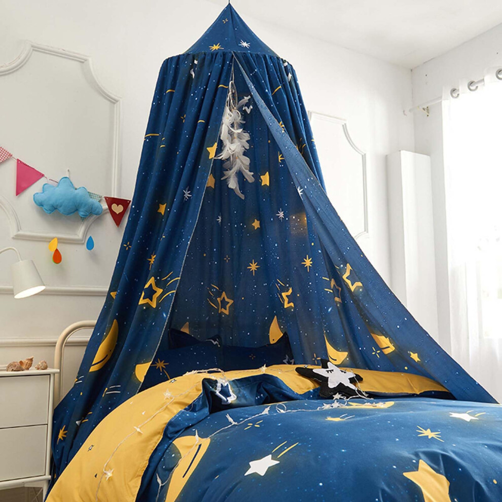 Spiritzohic Bed Canopy for Kids, Round Mosquito Net with Glowing Stars Kids Bed Curtains Bedroom Tent Room Decoration for Kid Bedroom Accessories Mosquito Net Suitable Beds 1.5M-1.8M(Blue)