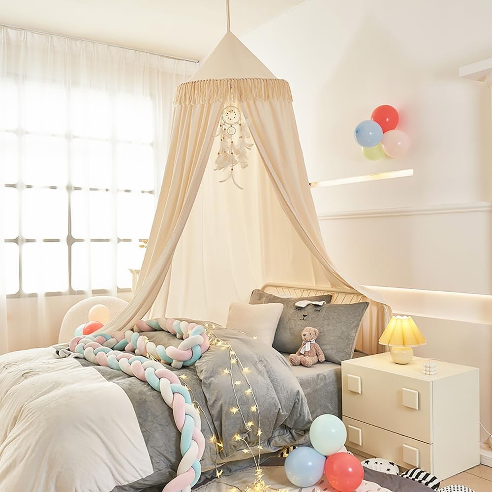 Bed Canopy with Tassels, Bed Canopy for Girls Kids Princess Round Dome Children