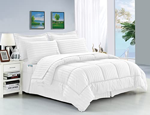 Elegant Comfort Stripe Bed-in-a-Bag 8-Piece Comforter Set, Microfiber, White, King