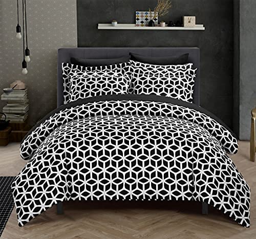 Chic Home Black Reversible Bed in a Bag Duvet Cover Set, King Size (3 Piece), Elizabeth - Geometric Diamond Print Design Microfiber Bedding with Zipper Closure - Duvet & Pillow Shams