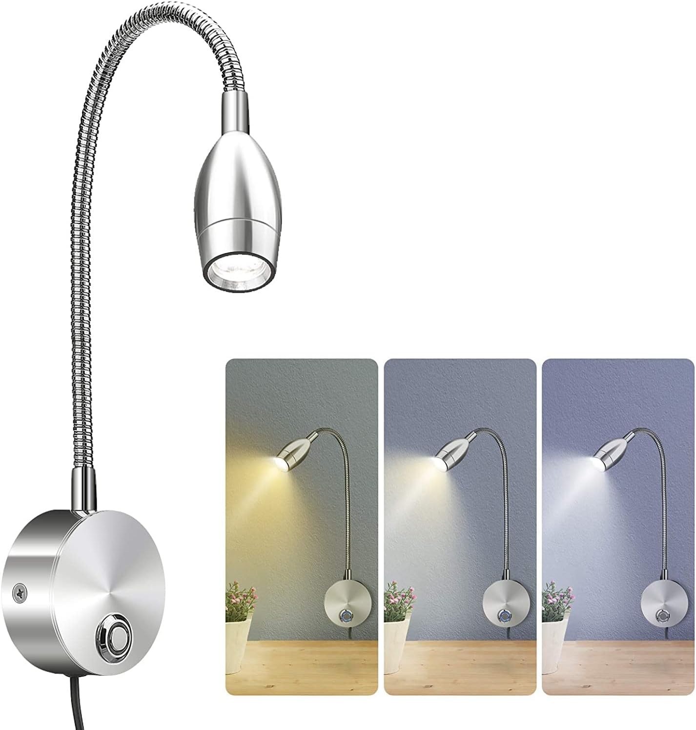 LED Reading Lamp Gooseneck Lamp Bed Lamp Reading Light with Dimmable 3 Colour T