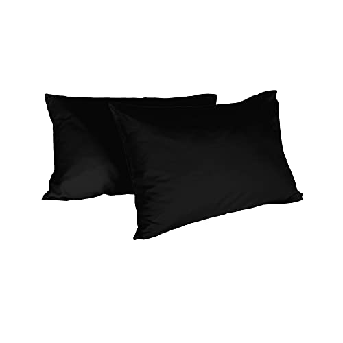 Italian Bed Linen Max Couple of Plain Color Pillowcases, 100% Cotton, Black, 52x82cm