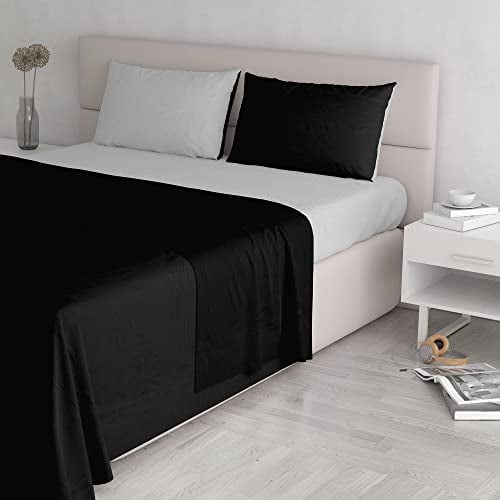 Italian Bed Linen Natural Color Duvet Cover Set with Doubleface Solid Colour Bag Sheet and Pillowcase, 100% Cotton, Black/Light Gray, small double