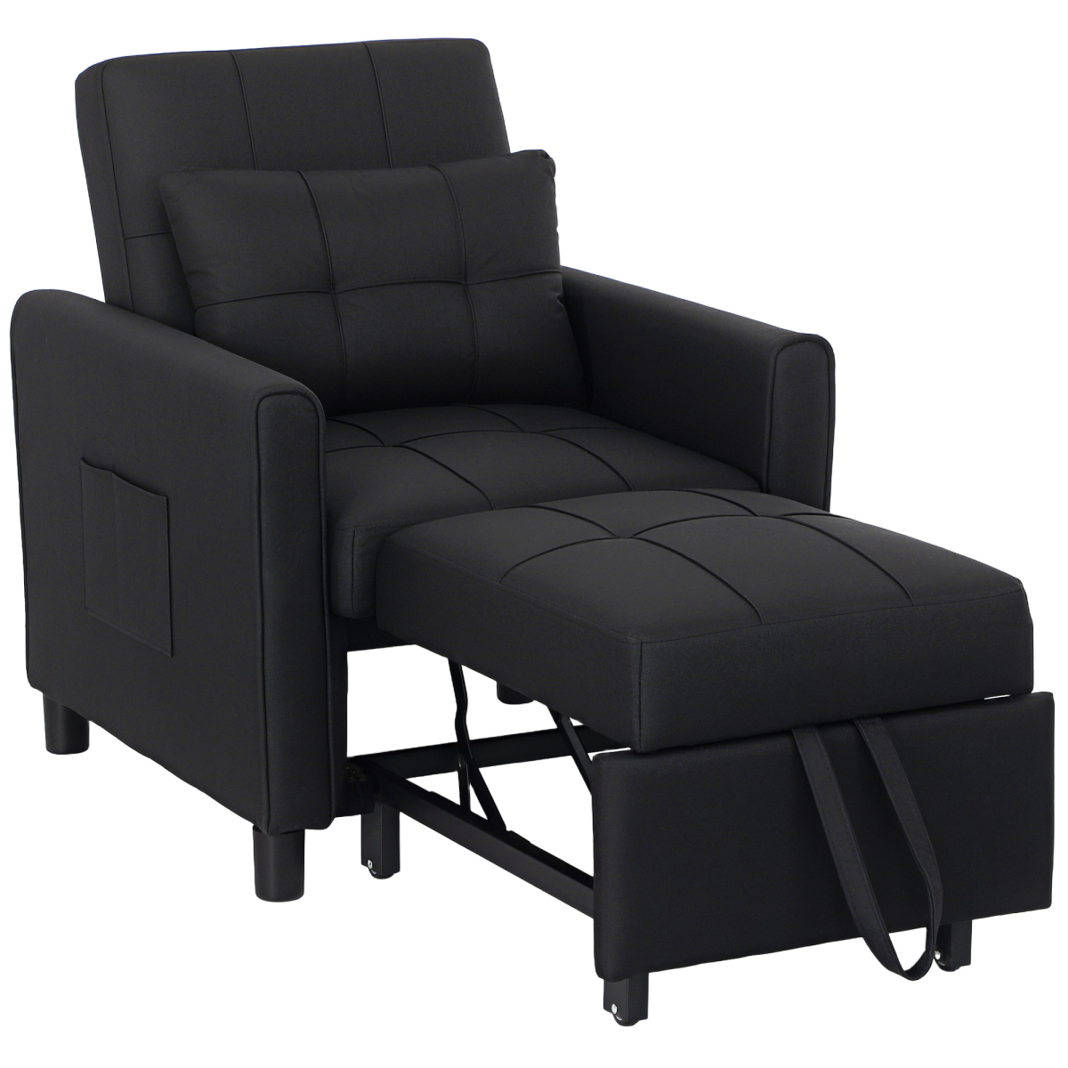COSTWAY 4-in-1 Convertible Sofa Bed, Single Sofa Chair Sleeper Folding Ottoman with Adjustable Backrest, Retractable Legs and Pillow, Modern Tufted Lounge Couch Guest Bed (Linen Fabric, Black)