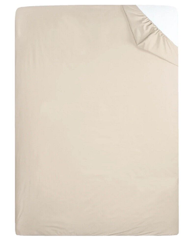 Sleepdown Cream Plain Fitted Sheet Non-Iron 180 Thread Count Percale Poly Cotton Easy Care 32cm Extra Deep Pocket Bedsheet Bed Linen - Single