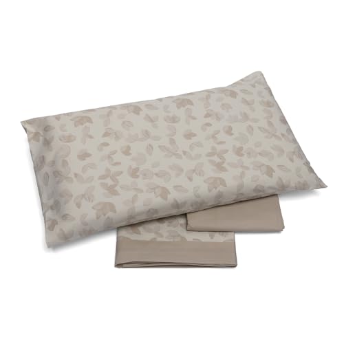 Foppapedretti Notte & Nature Bed Linen Set, Single Bed, Flat Sheet, Corner Sheet and Pillowcase; Sand Leaves 100% Cotton, Made in Italy