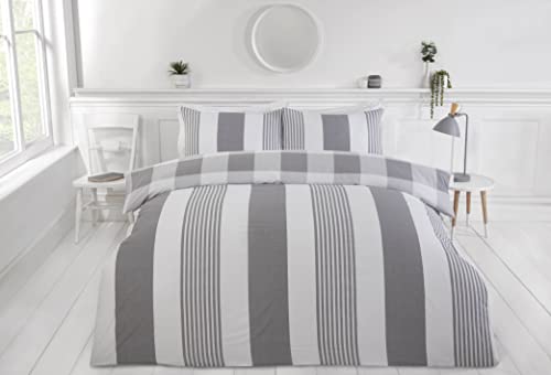 Rapport Home Furnishings Chambray Stripe Duvet Cover Set Reversible Bedding Bed Set Bed Linen (Single, Grey)