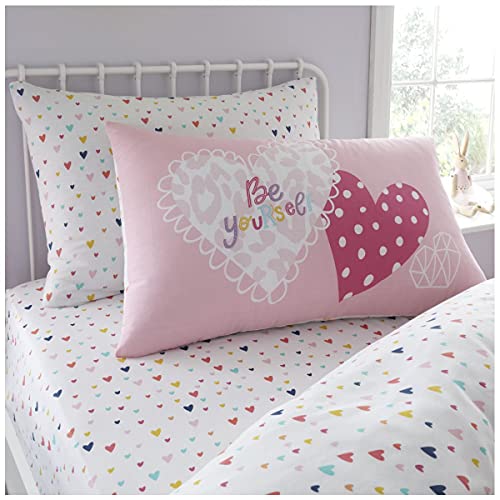 GC GAVENO CAVAILIA Children Duvet Cover OR Luxury Soft Cosy Fitted, Easy Care Heart Bed Linen, Polycotton, Pink, Single Sheet Set