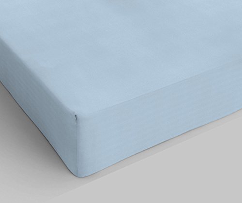 Sleepdown Blue Plain Fitted Sheet Non-Iron 180 Thread Count Percale Poly Cotton Easy Care 25cm Deep Pocket Bedsheet Bed Linen - Single