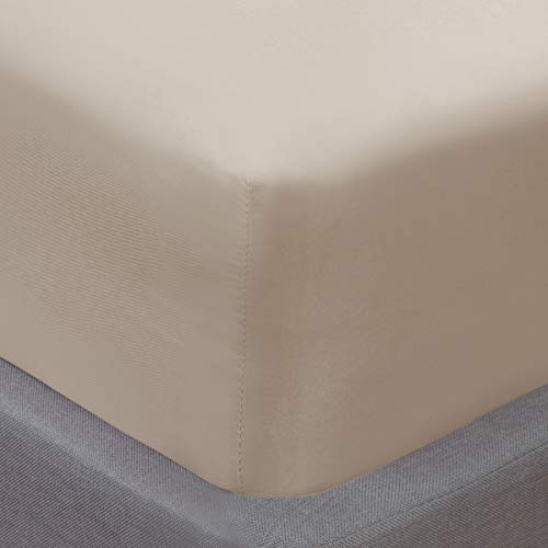 Sleepdown Taupe Plain Fitted Sheet Non-Iron 180 Thread Count Percale Poly Cotton Easy Care 25cm Deep Pocket Bedsheet Bed Linen - Single, King