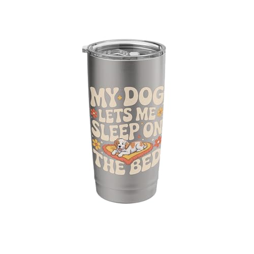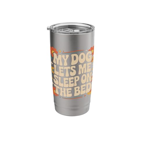 My Dog Lets Me Sleep on The Bed Funny Dog Owner Humor Groovy Stainless Steel Insulated Tumbler