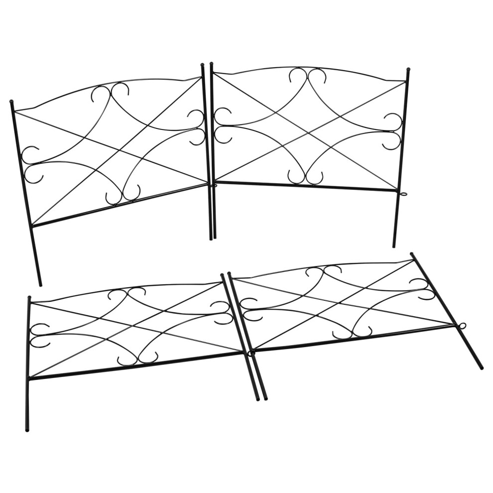 Woodside Hanworth Metal Garden Border Edging, Outdoor Lawn Fence, Flower Bed Fencing, Animal/Dog/Pet Barrier, 2.4m Total Length, pack of 4
