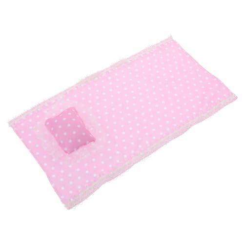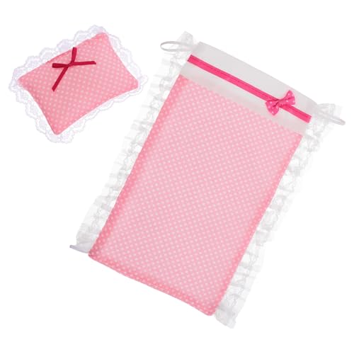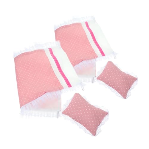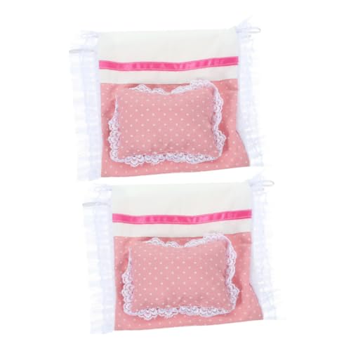 ifundom 2 Sets Miniature Doll Bedding Kit for Doll Cradle Including Bed Sheet and Pillow Pink Dollhouse Bedroom Accessories Simulation Play