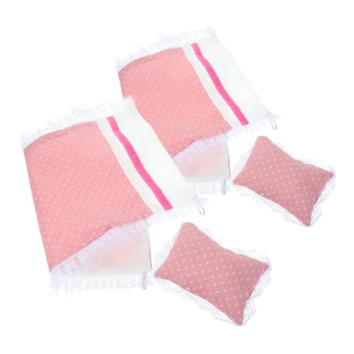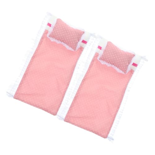 CLISPEED 2 Sets Dollhouse Bedding Accessories Kit Miniature Doll Bed Sheet and Pillow Set Pink Dollhouse Bedroom Mini Bed Supplies for Dolls