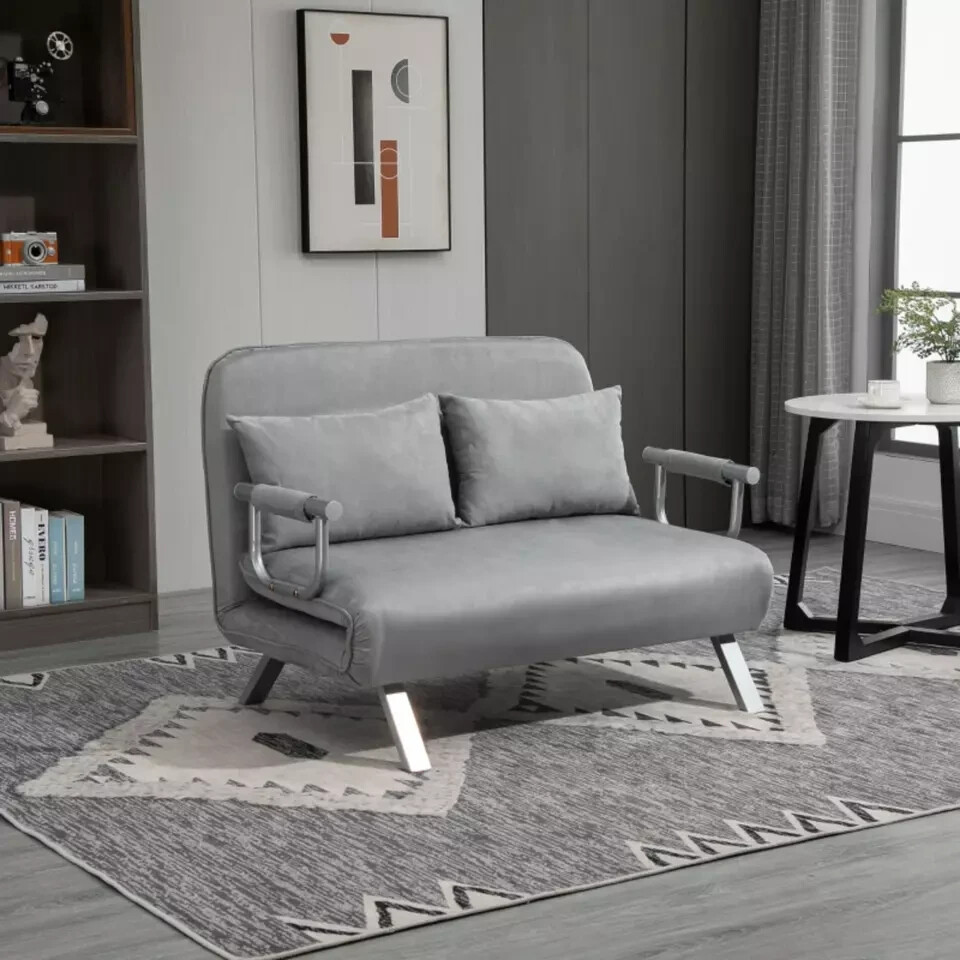 Fabric Convertible 2 Seater Sofa Bed 2 Pillows for Living Room Light Grey Set