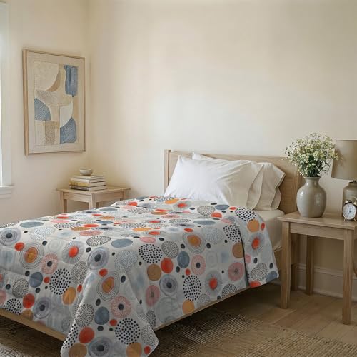 Italian Bed Linen Fantasy Microfibre Summer Quilt, Single 170 x 270 cm, Abstract Circles
